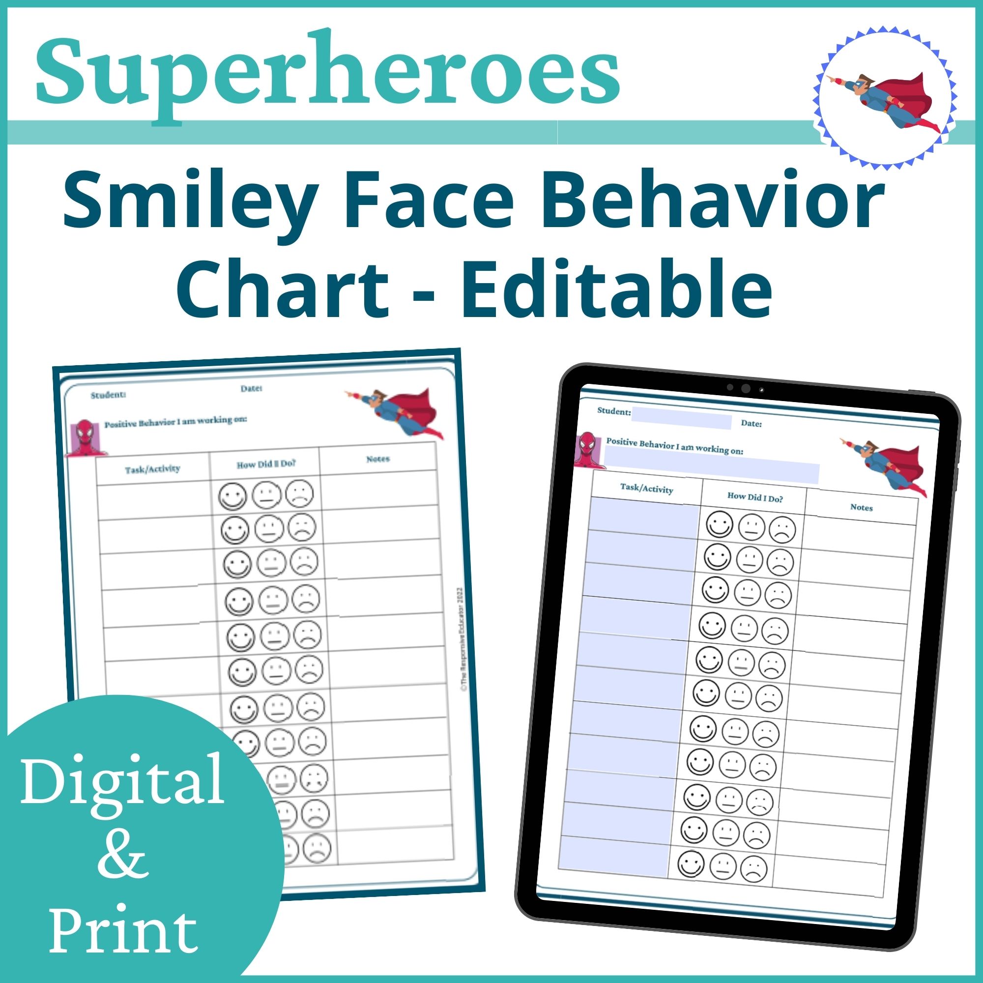 This Smiley Face Behavior Chart – Superheroes Theme gives teachers a clear, visual way to record behavior across the day using simple smiley face icons. By breaking the day into manageable sections, it helps identify when challenges tend to occur, supports consistent feedback, and creates a shared reference point for reflection and communication.