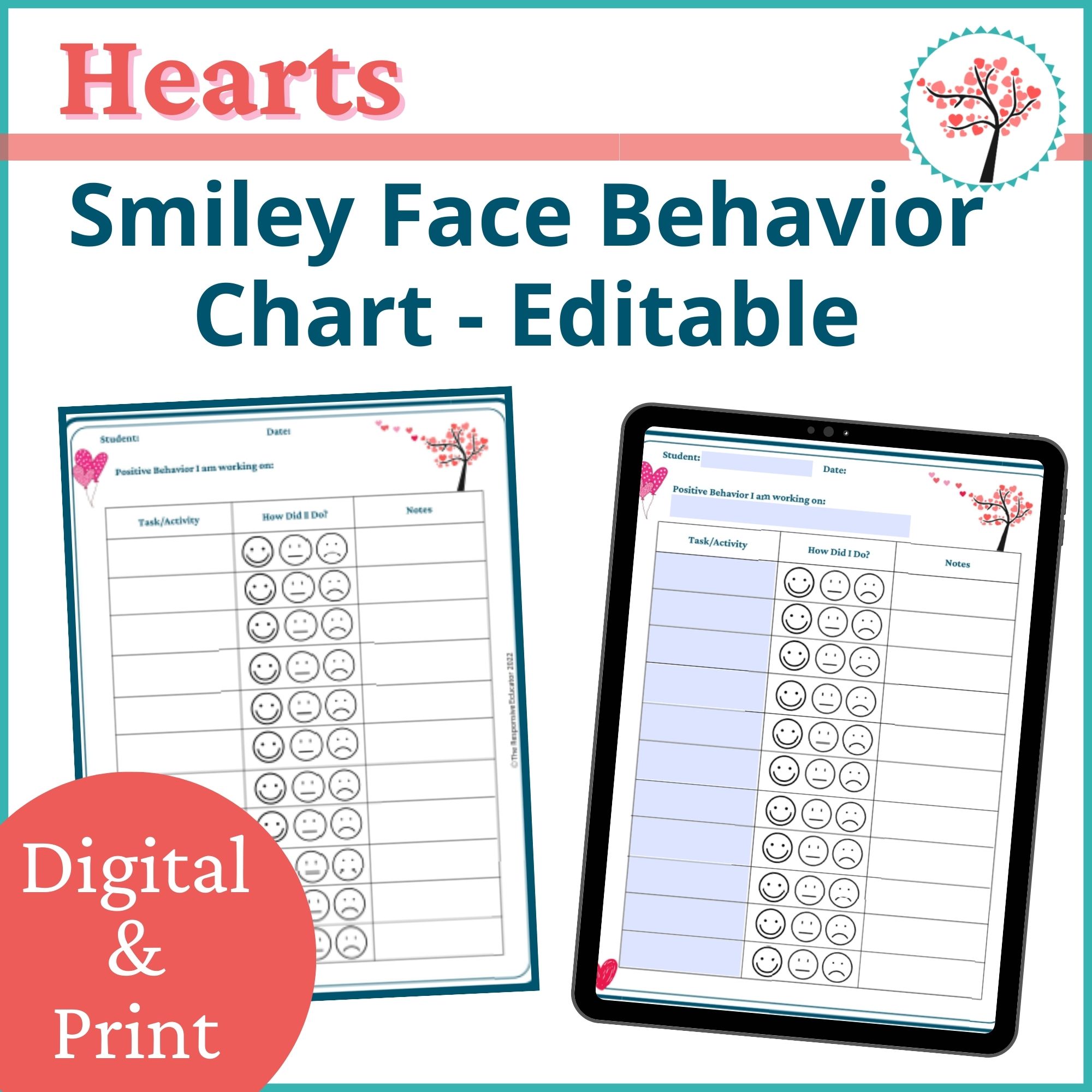 A simple, visual behavior chart designed for younger students. This Valentine’s Day-themed smiley face behavior chart helps teachers track behavior across the day, spot patterns, and support consistent routines. Includes editable and printable PDF formats.